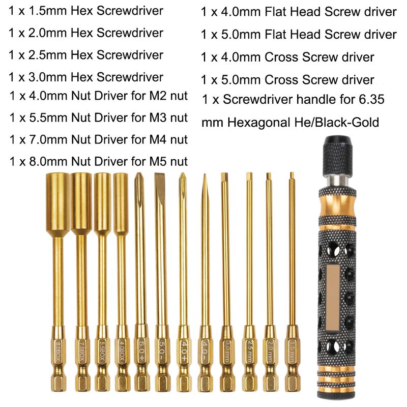 1 x Screwdriver handle for 6.35mm Hexagonal Hex/Black-Gold