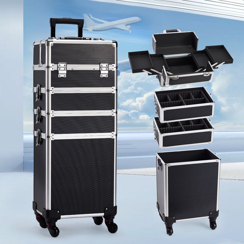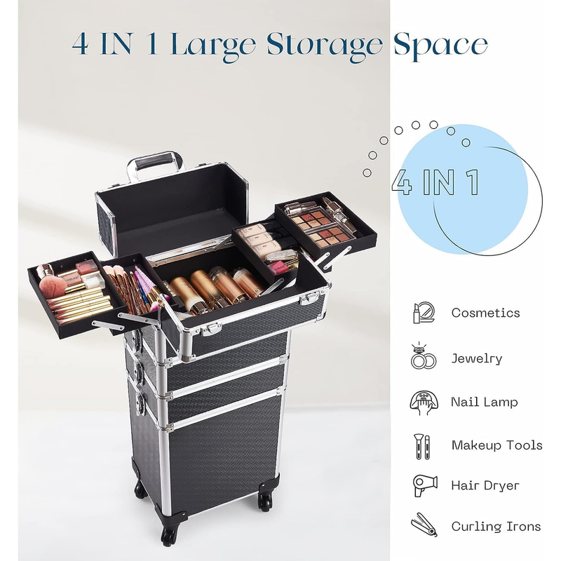 4 in 1 Makeup Case On Wheels Beauty Trolley Makeup Trolley Case with Wheels Makeup Organiser Storage Beauty Case Make Up Trolley