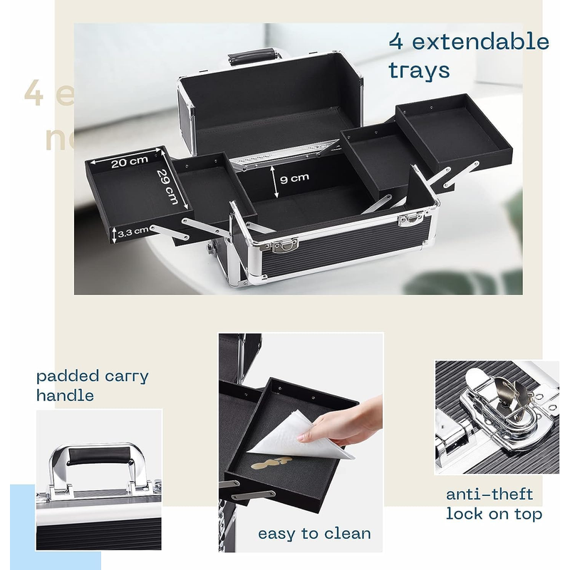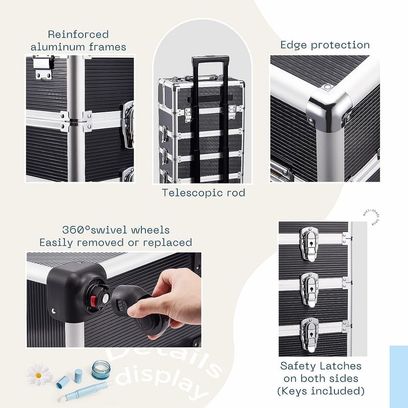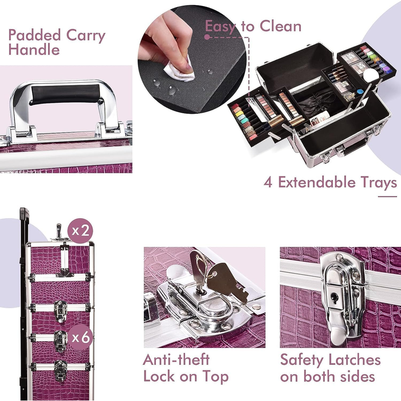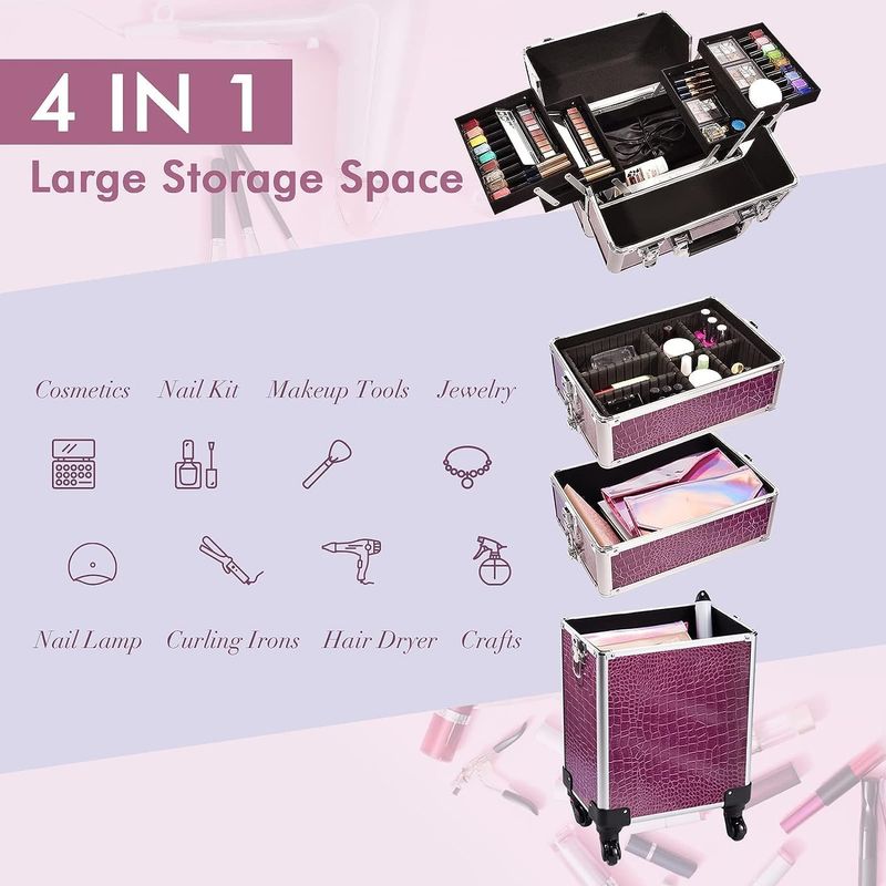 4 in 1 Makeup Case On Wheels Beauty Trolley Makeup Trolley Case with Wheels Makeup Organiser Storage Beauty Case Make Up Trolley