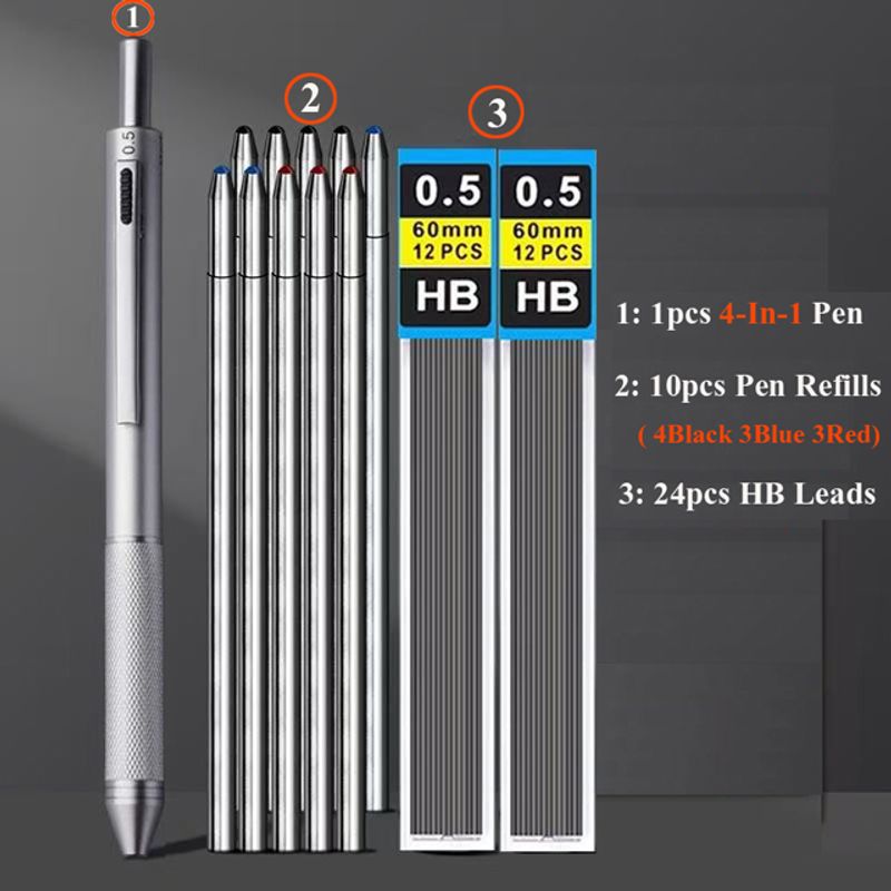 4 In 1 Multicolor Metal Ballpoint Pens 3 Colors Ball Pen 1 Mechanical Pencil For School Office Writing Supplies Stationery