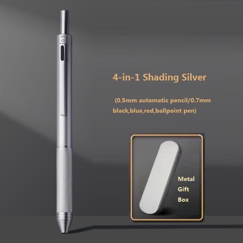 4 In 1 Multifunction Luxury Pen, 0.7mm 3 Color Ballpoint 0.5mm Mechanical Pencil, Gravity Sensor Metal Retractable Pens Długopis