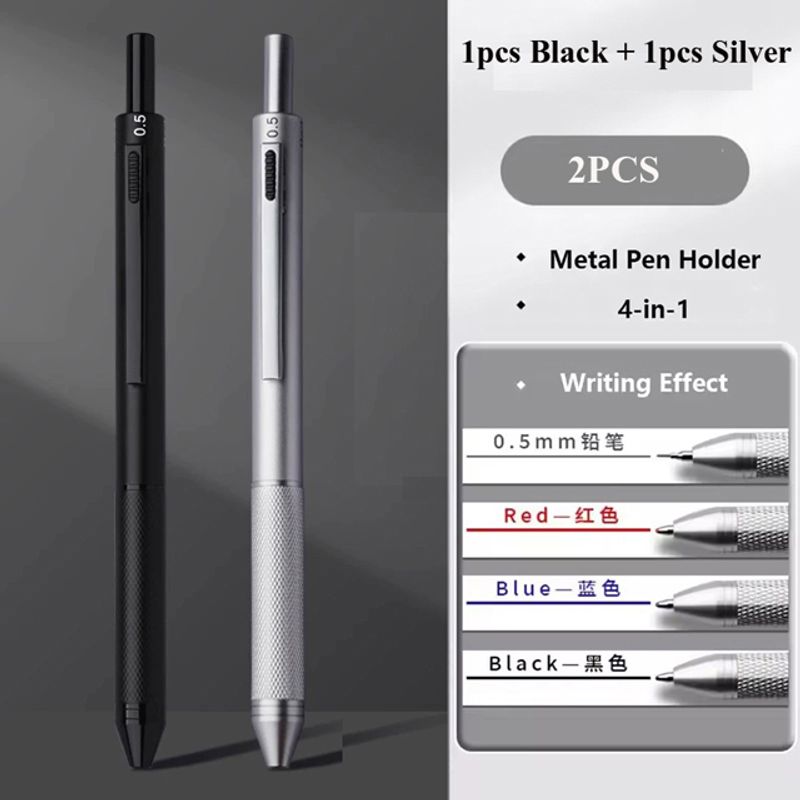 4 In 1 Multifunction Luxury Pen, 0.7mm 3 Color Ballpoint 0.5mm Mechanical Pencil, Gravity Sensor Metal Retractable Pens Długopis