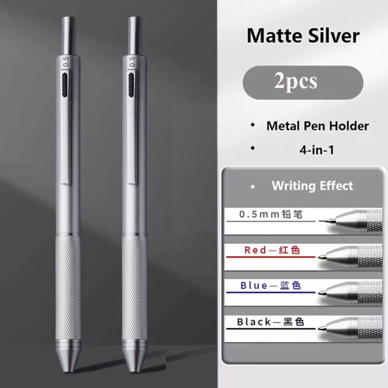 4 In 1 Multifunction Luxury Pen, 0.7mm 3 Color Ballpoint 0.5mm Mechanical Pencil, Gravity Sensor Metal Retractable Pens Długopis