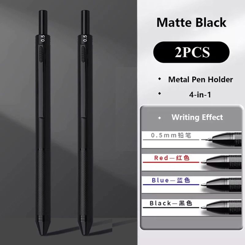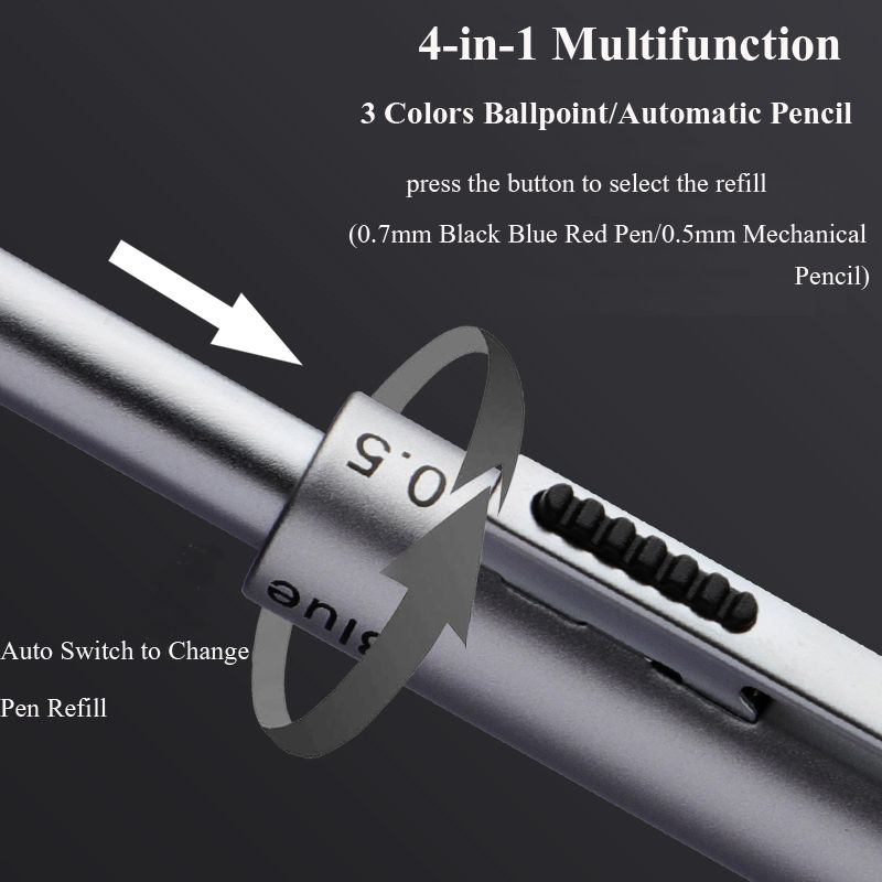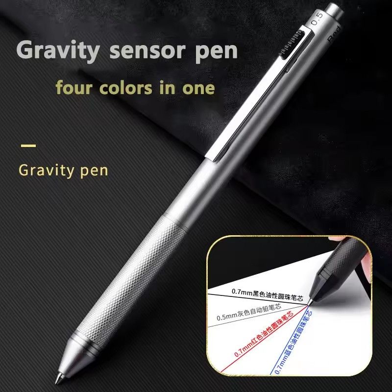 4 In 1 Multifunction Luxury Pen, 0.7mm 3 Color Ballpoint 0.5mm Mechanical Pencil, Gravity Sensor Metal Retractable Pens Długopis