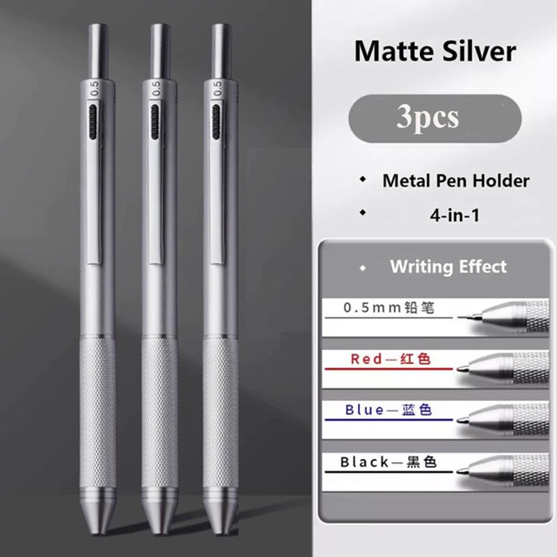 4 In 1 Multifunction Luxury Pen, 0.7mm 3 Color Ballpoint 0.5mm Mechanical Pencil, Gravity Sensor Metal Retractable Pens Długopis