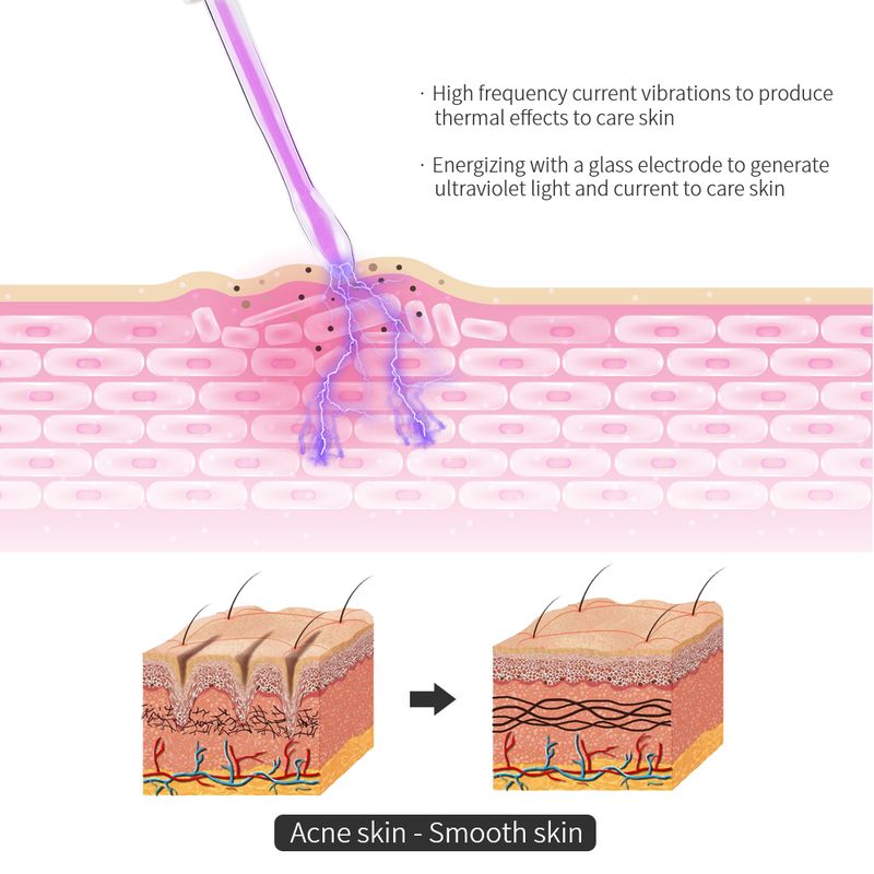 1.The high frequency electrotherapy is an important beauty instrument. It is through the glass electrode tube to produce high frequency current, and apply to the skin, thus achieves the treatment result.