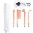 1.Please grease essence and cream on the face first and then the hold the metal bar to put the glass tube on face.Turn on the machine.