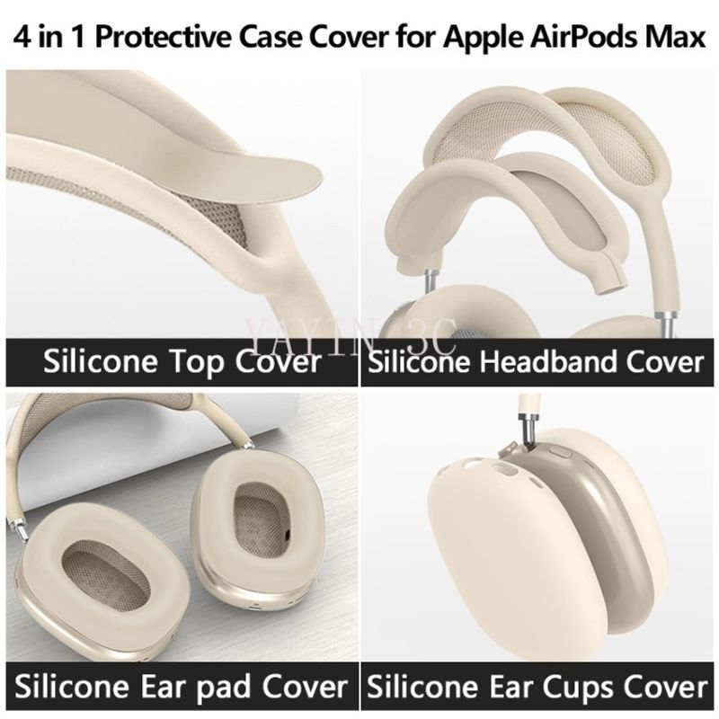 【Full Protection】Made of high-quality and durable silicone material, one AirPods Max headband cover, one pair of AirPods Max earmuff covers, and one pair of AirPods Max ear pad covers provide 360° protection for AirPods Max headphones from scratches, scratches, accidental drops, collisions and impacts.