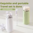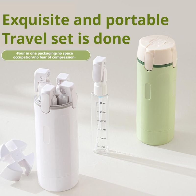1. [4-in-1 Travel Set] This innovative 4-in-1 travel dispenser offers travel convenience. Its compact design cleverly houses four independent refillable bottles, perfectly suited for your cleanser, shower gel, lotion, and makeup remover, making your travel grooming routine easy and convenient.