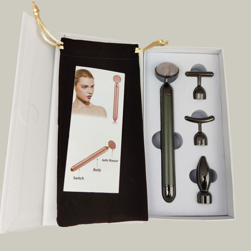 4 in 1 Vibrating Rose Quartz Roller Face Roller Eye Massager Jade Roller T/V Shaped Face Lifting Slimming Beauty Care Massager