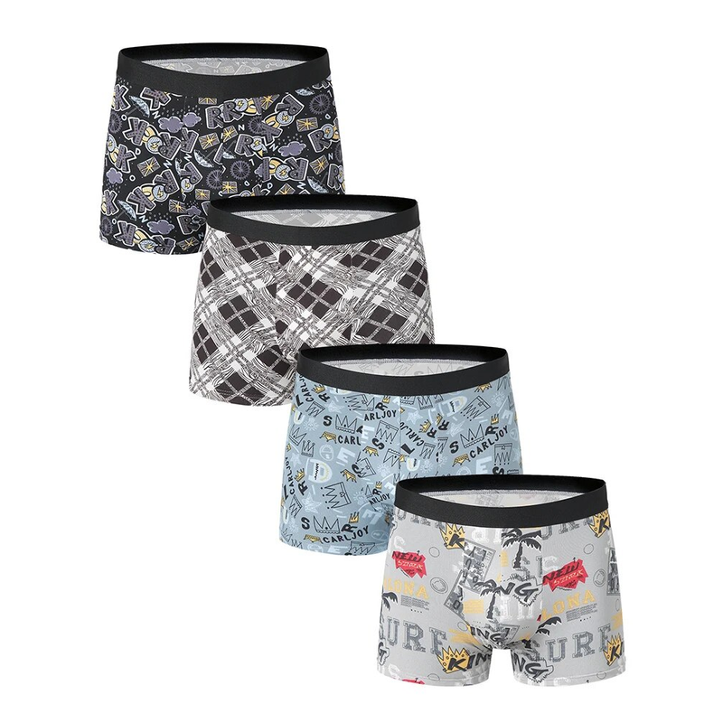4 Pack European and American Size MEN'S FASHION Printed Boxer Underwear Comfortable Swimming Trunks Oversized Underwear Shorts