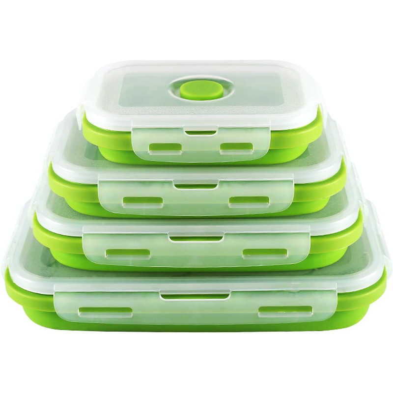4 Pack Silicon Lunch Box Flat Stacks Collapsible Food Storage Containers With Lids Leftover Meal Box For Kitchen BPA Free