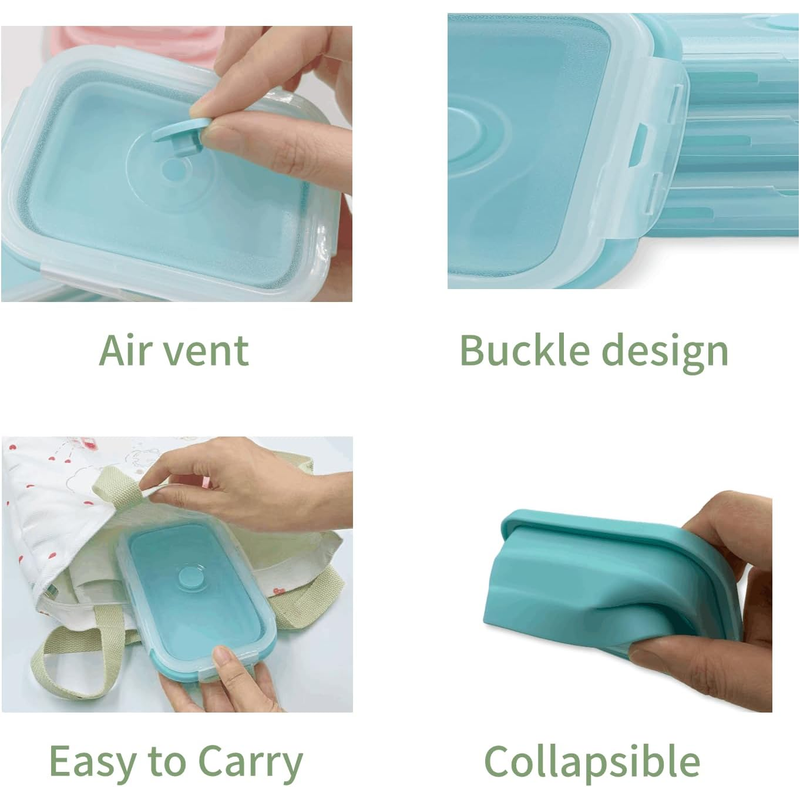 4 Pack Silicon Lunch Box Flat Stacks Collapsible Food Storage Containers With Lids Leftover Meal Box For Kitchen BPA Free