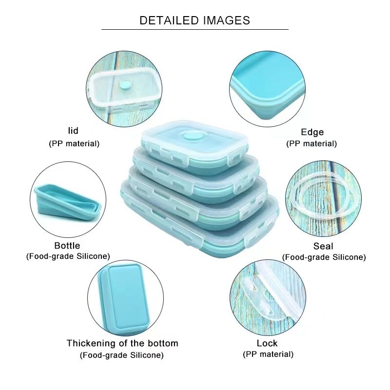 4 Pack Silicon Lunch Box Flat Stacks Collapsible Food Storage Containers With Lids Leftover Meal Box For Kitchen BPA Free