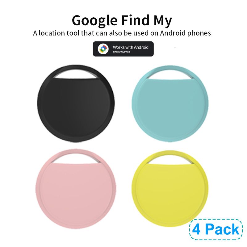 4 Pack Smart Bluetooth Alarm Tracker Works with Google Find My APP Anti Lost Device for Android Tag Locator for Pet Luggage
