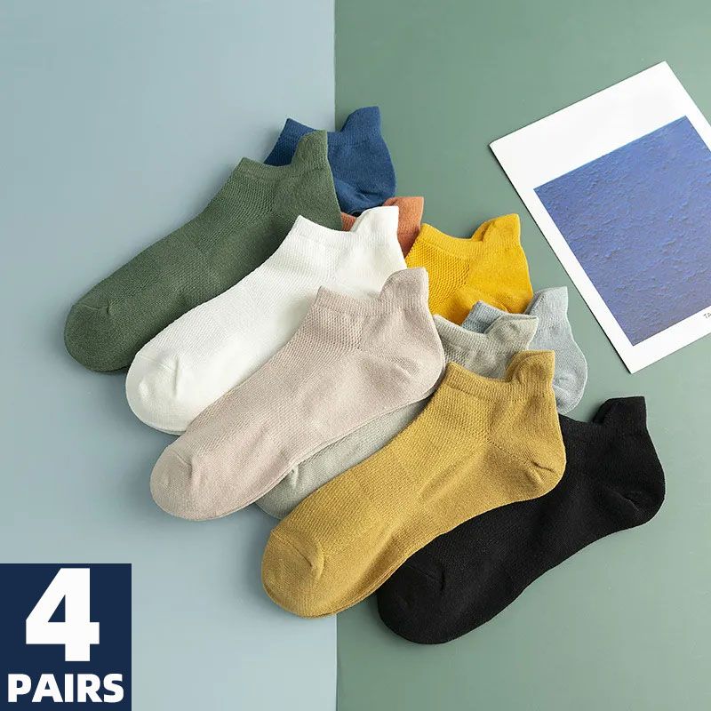 4 Pairs Brand Men Cotton Socks New Style Soft Breathable Solid Colorful Simple Fashion Short Ankle Street Unisex Sock Plus Size