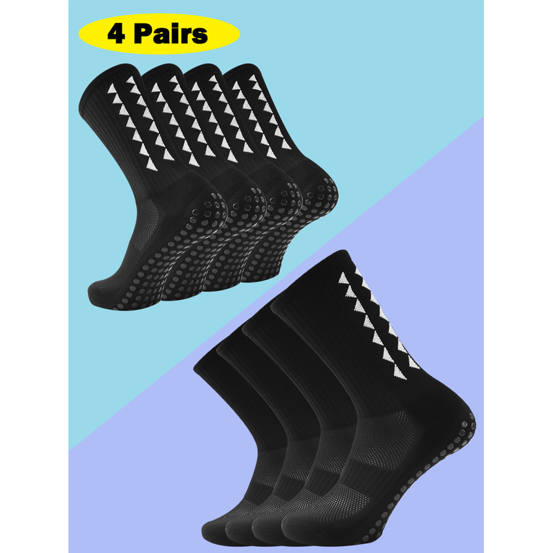 4 Pairs Men's Grip Soccer Socks, Non-Slip Athletic Socks for Basketball, Football, Sports