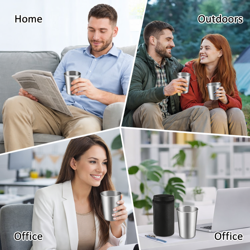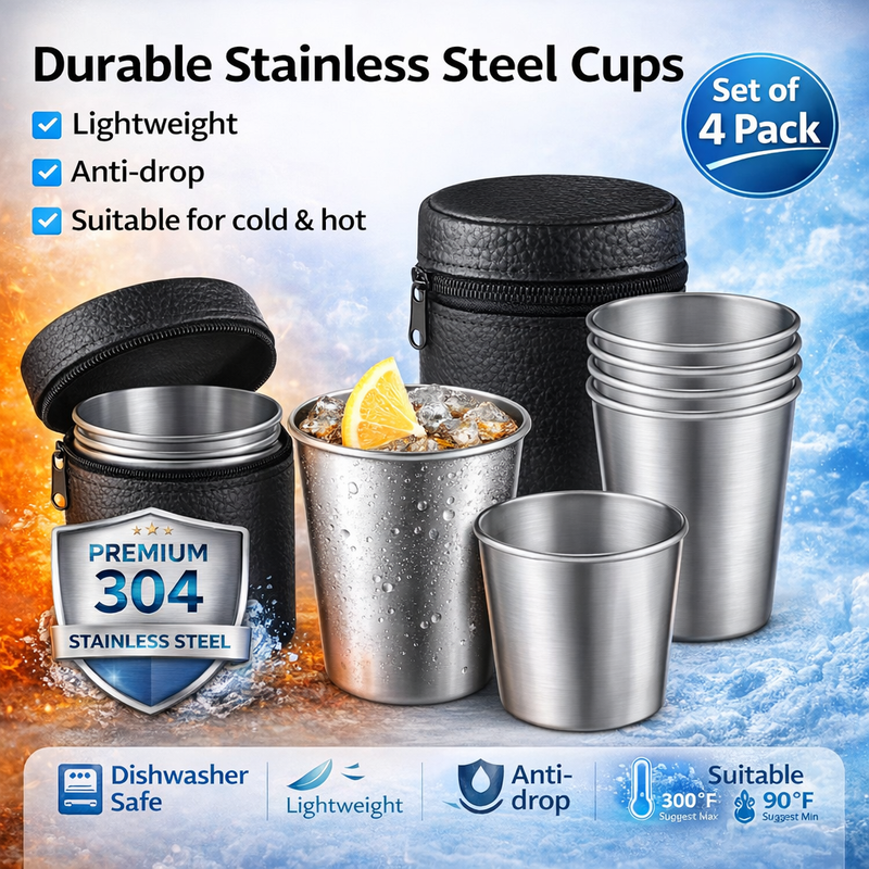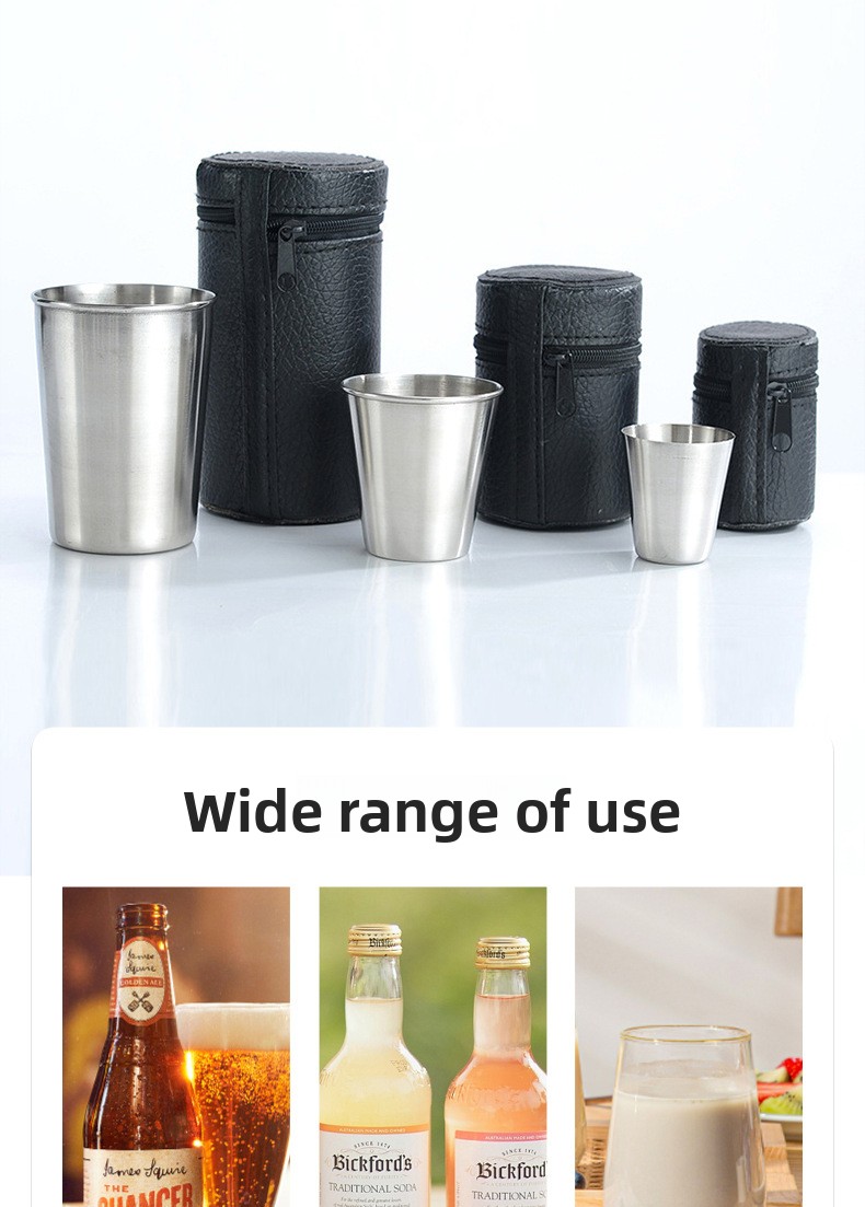4 Pcs Portable Stainless Steel Cups (30-170ml) with Storage Bag, Stackable Metal Drinking Tumblers for Bar, Camping, Office