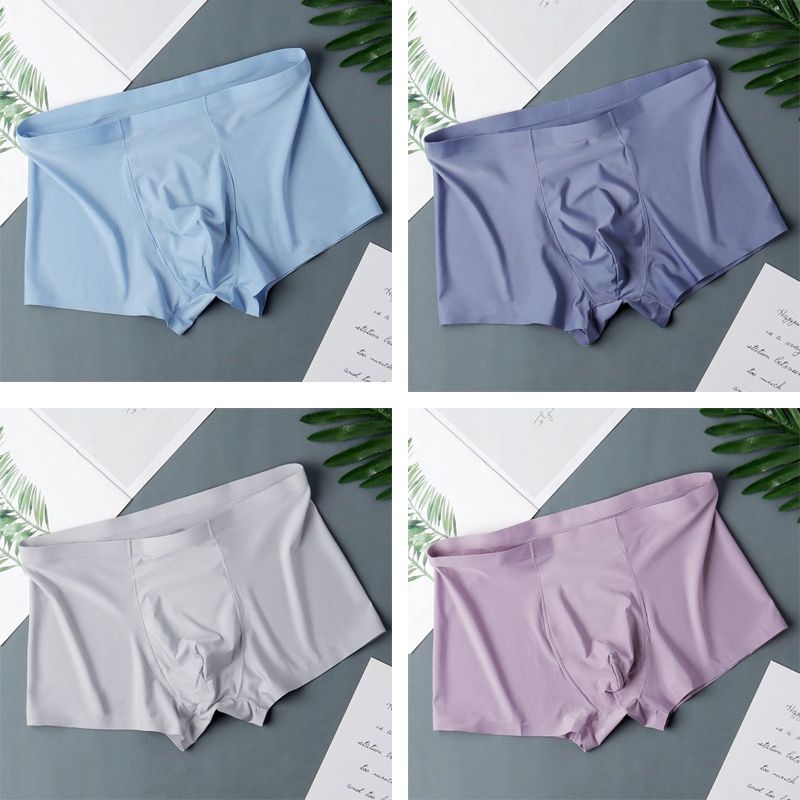 4 Pcs/Lot Men's Ice Silk Sexy Seamless Ultra-thin Boxer Briefs Shorts Underwear Underpants Male Breathable Panties