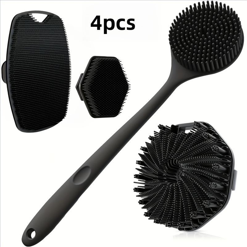 4-piece bath brush set Soft silicone bath brush with non-slip handle, easy to clean and rinse, perfect for use in the bath