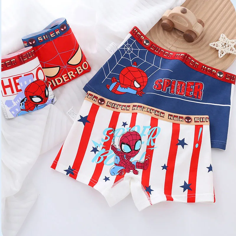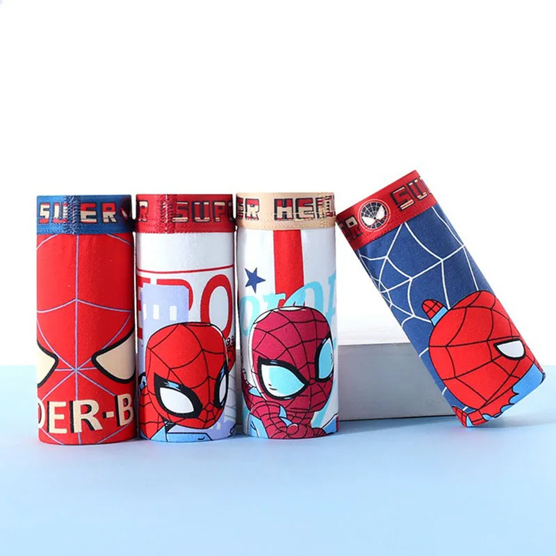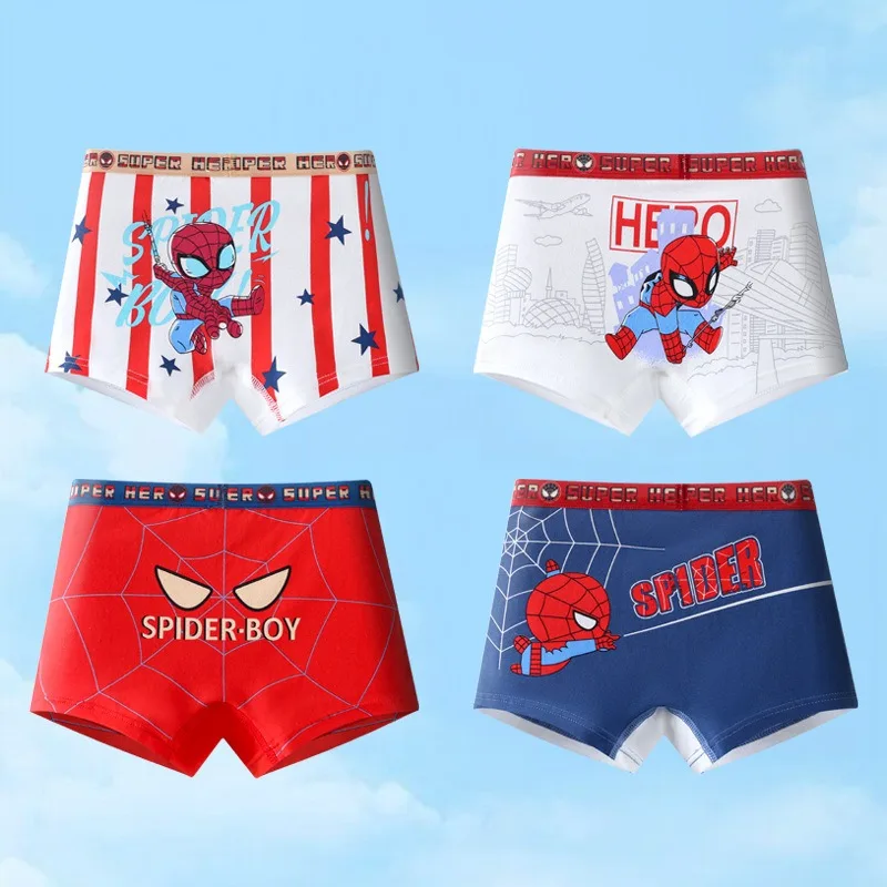 4-Piece Boys Cotton Underwear Cool Spiderman Cartoon Print Children Boys Boxers Comfortable and Breathable Kids Boxer Shorts