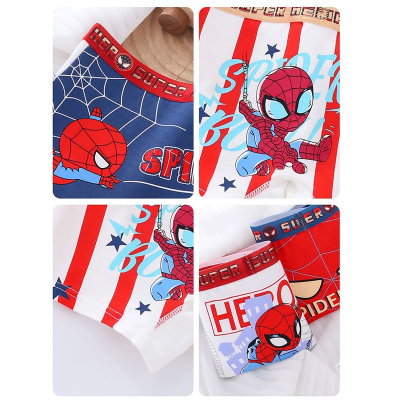 4-Piece Boys Cotton Underwear Cool Spiderman Cartoon Print Children Boys Boxers Comfortable and Breathable Kids Boxer Shorts