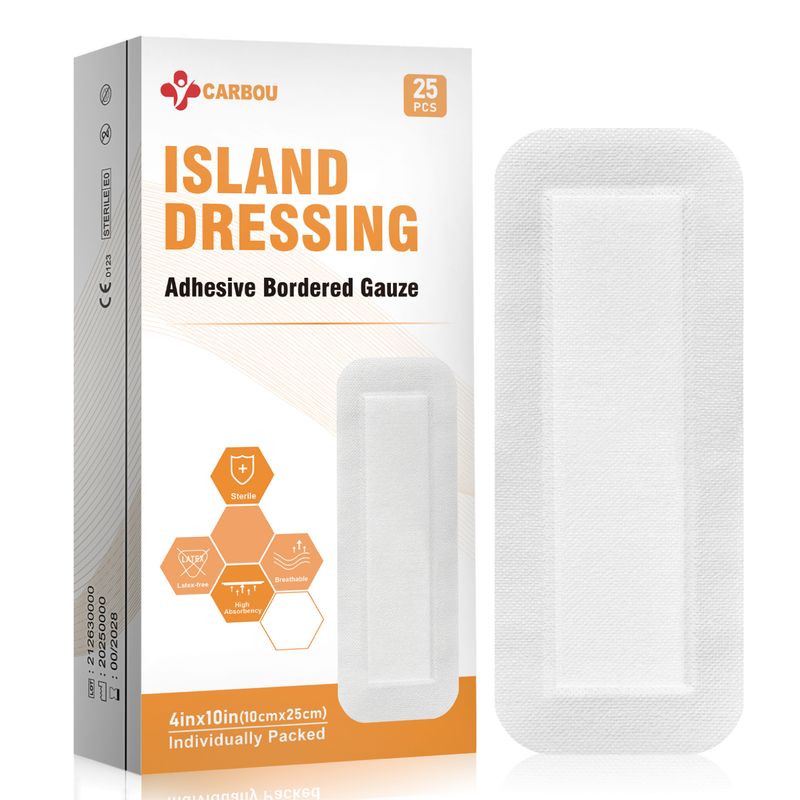 [4''x10''-25count] Carbou Island Dressing Bordered Gauze Pads,Highly Absorbent Adhesive Wound Dressing for Wound Care