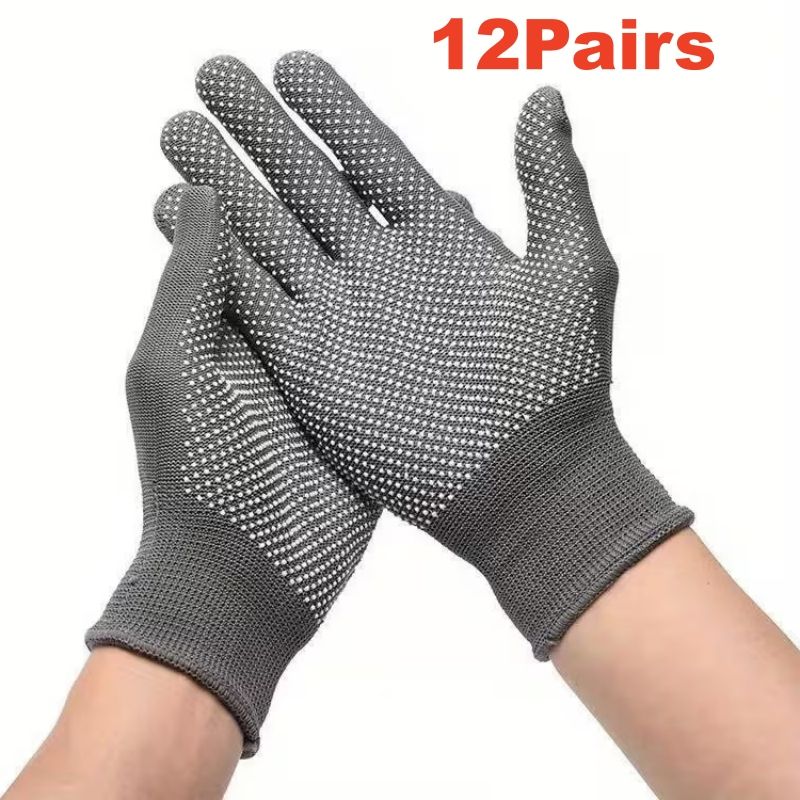 4/12/24PCS Safety Work Gloves Anti-Slip Dots Knitted Stretchy Cloth Gloves for Unisex Gardening Warehouse Grilling BBQ Outdoors