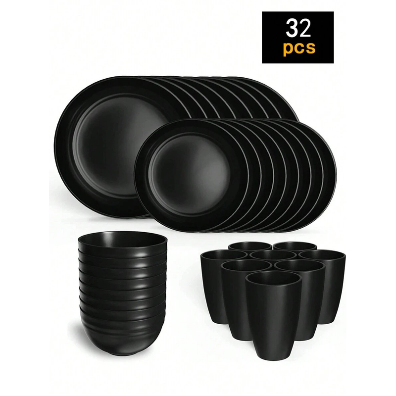4/16/24pcs Reusable plastic tableware set, including plates, bowls and cups. Suitable for family picnics and school supplies
