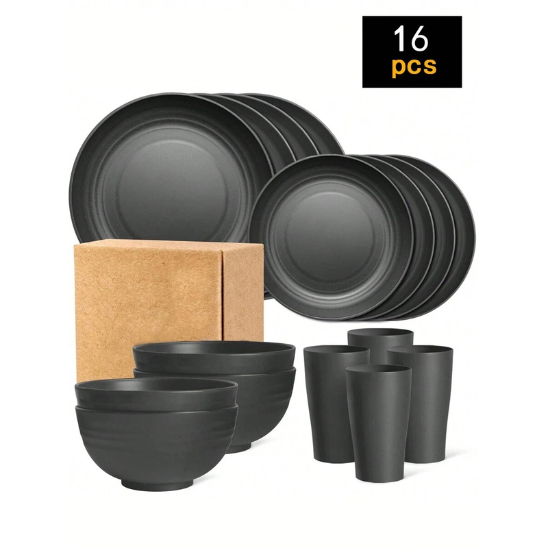 4/16/24pcs Reusable plastic tableware set, including plates, bowls and cups. Suitable for family picnics and school supplies