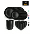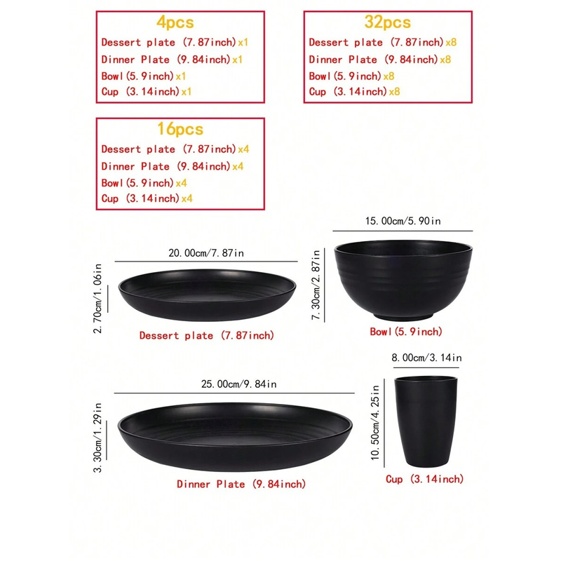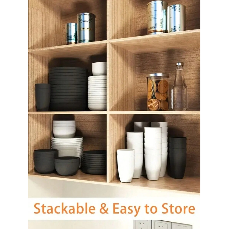 4/16/24pcs Reusable plastic tableware set, including plates, bowls and cups. Suitable for family picnics and school supplies