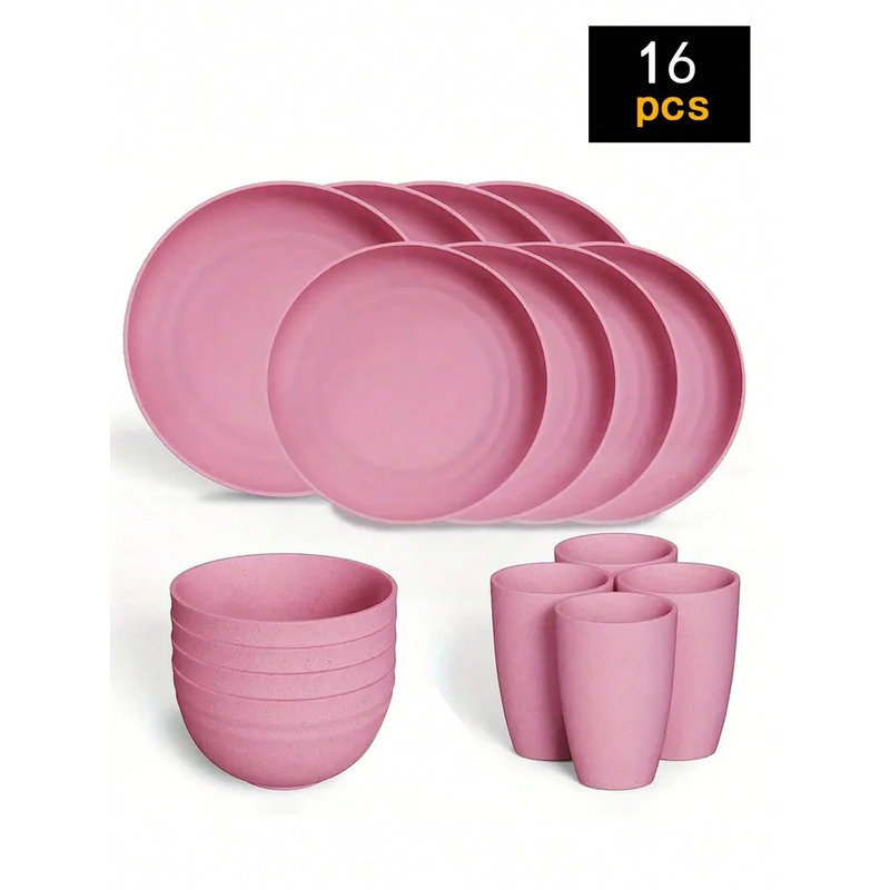 4/16/24pcs Reusable plastic tableware set, including plates, bowls and cups. Suitable for family picnics and school supplies