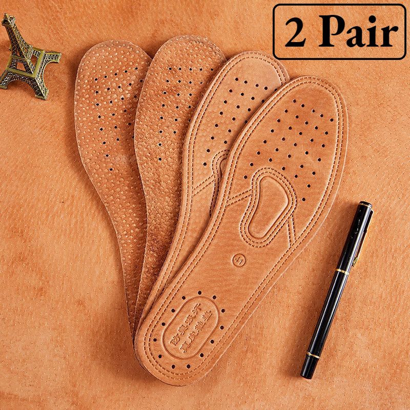 4/2Pcs Cowhide Leather Insole For Shoes Men Comfortable Deodorant Orthotic Insoles Flat Feet Lightweight Leather Flats Shoe Sole