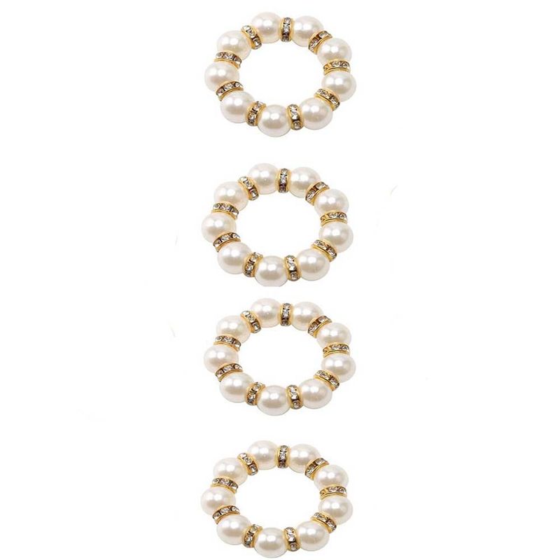 4/6/12PCS Elegant Pearl Napkin Rings Sliver Elastic Serviette Holder for Wedding Party Banquet Dinner  Napkins Holder Decoration