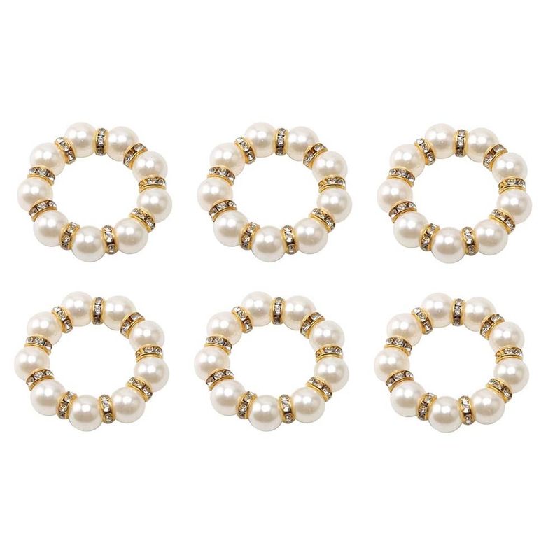 4/6/12PCS Elegant Pearl Napkin Rings Sliver Elastic Serviette Holder for Wedding Party Banquet Dinner  Napkins Holder Decoration