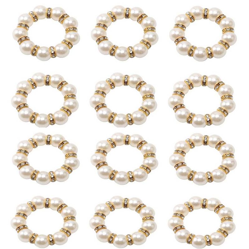 4/6/12PCS Elegant Pearl Napkin Rings Sliver Elastic Serviette Holder for Wedding Party Banquet Dinner  Napkins Holder Decoration
