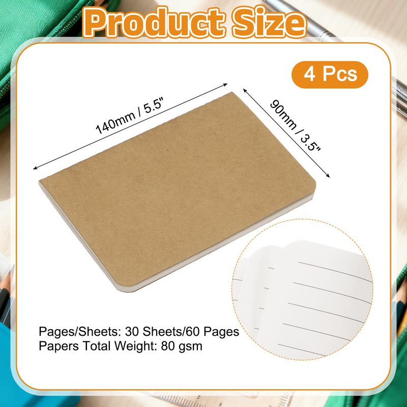 4/6Pcs A6 Mini Pocket Notebook Kraft Paper Lined Journal Memo Pad 30 Sheets/60 Pages Portable Notebook Notepad Office Supplies