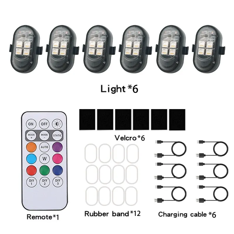 4/6PCS RGB Led Car Strobe Lights Motorcycle Wireless Light Aircraft Airplane Helicopter Warning Lights LED Flash with USB Charge