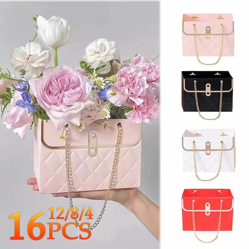 Practical and Rectangle: These flower boxes for arrangements are designed in the shape of a handbag, which look elegant and delicate. The double chain handle design will offer a lot of convenience for you. The rectangle shape can make flowers stretch easily and flexibly, showing the beauty of flowers.
