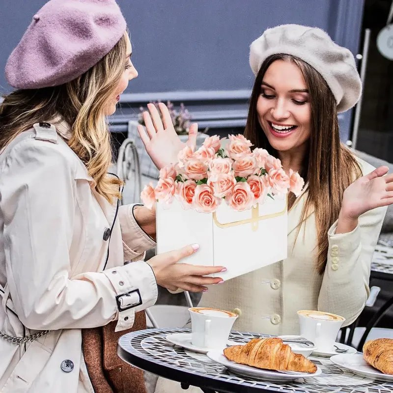 Practical and Rectangle: These flower boxes for arrangements are designed in the shape of a handbag, which look elegant and delicate. The double chain handle design will offer a lot of convenience for you. The rectangle shape can make flowers stretch easily and flexibly, showing the beauty of flowers.