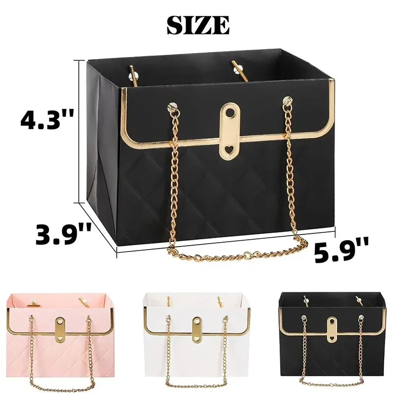 Practical and Rectangle: These flower boxes for arrangements are designed in the shape of a handbag, which look elegant and delicate. The double chain handle design will offer a lot of convenience for you. The rectangle shape can make flowers stretch easily and flexibly, showing the beauty of flowers.