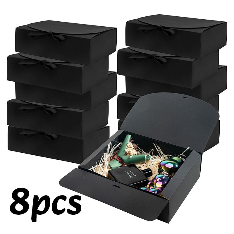 4/8PC Black Gift Box With Lid Party Gift Decoration Box Bridesmaid Proposal Box with Ribbon Xmas Halloween Candy Biscuit Boxes