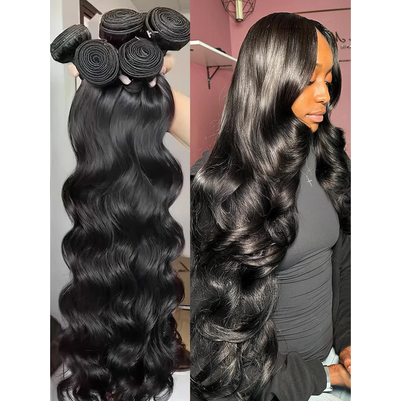 40 Inch Body Wave 100% Human Hair Brazilian Burmese Raw Extensions Loose Water Weave 3 4 Bundles Natural Black Crochet Tissage