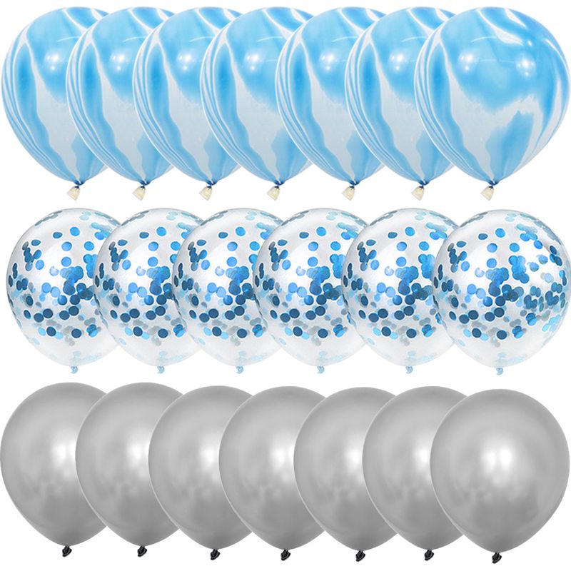 40 Pcs Blue Set Agate Marble Balloons GOLDEN Confetti Balloon Wedding Valentine's Day Baby Shower Birthday Party Decorations