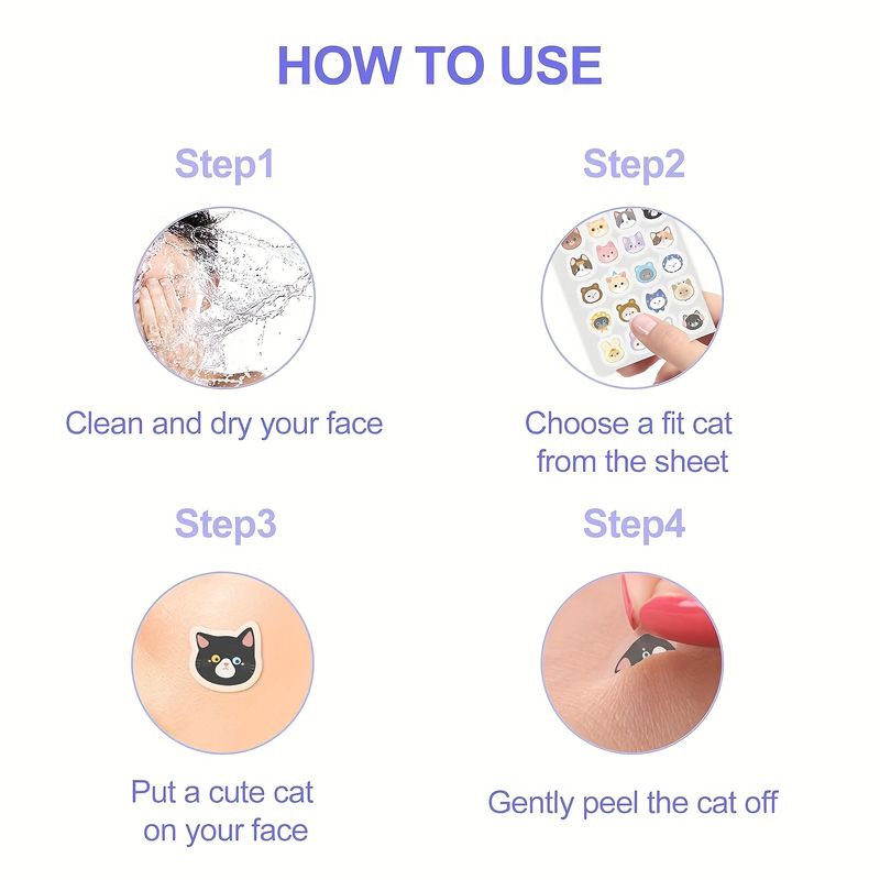40 PCS Cute Fun Cartoon Cat Pimple Stickers - Face Concealer Patches for Concealing and Cleaning Facial Imperfections. Ultra-thi