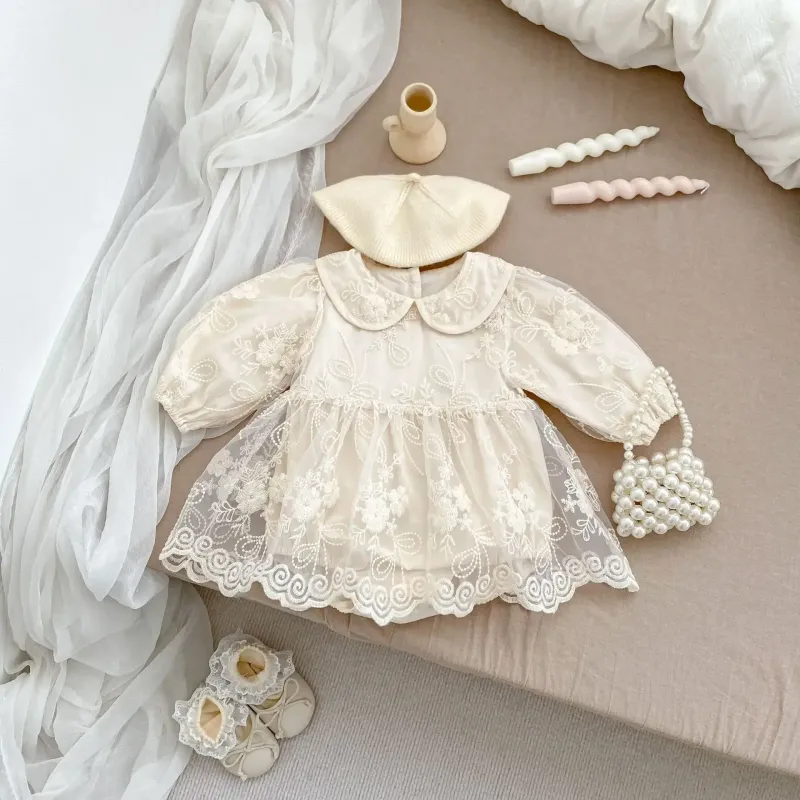 4068-1 Baby Romper Dress New Autumn Fashion Embroidered Gauze Bag Fart Skirt Baby Girl's Princess One Piece Clothes