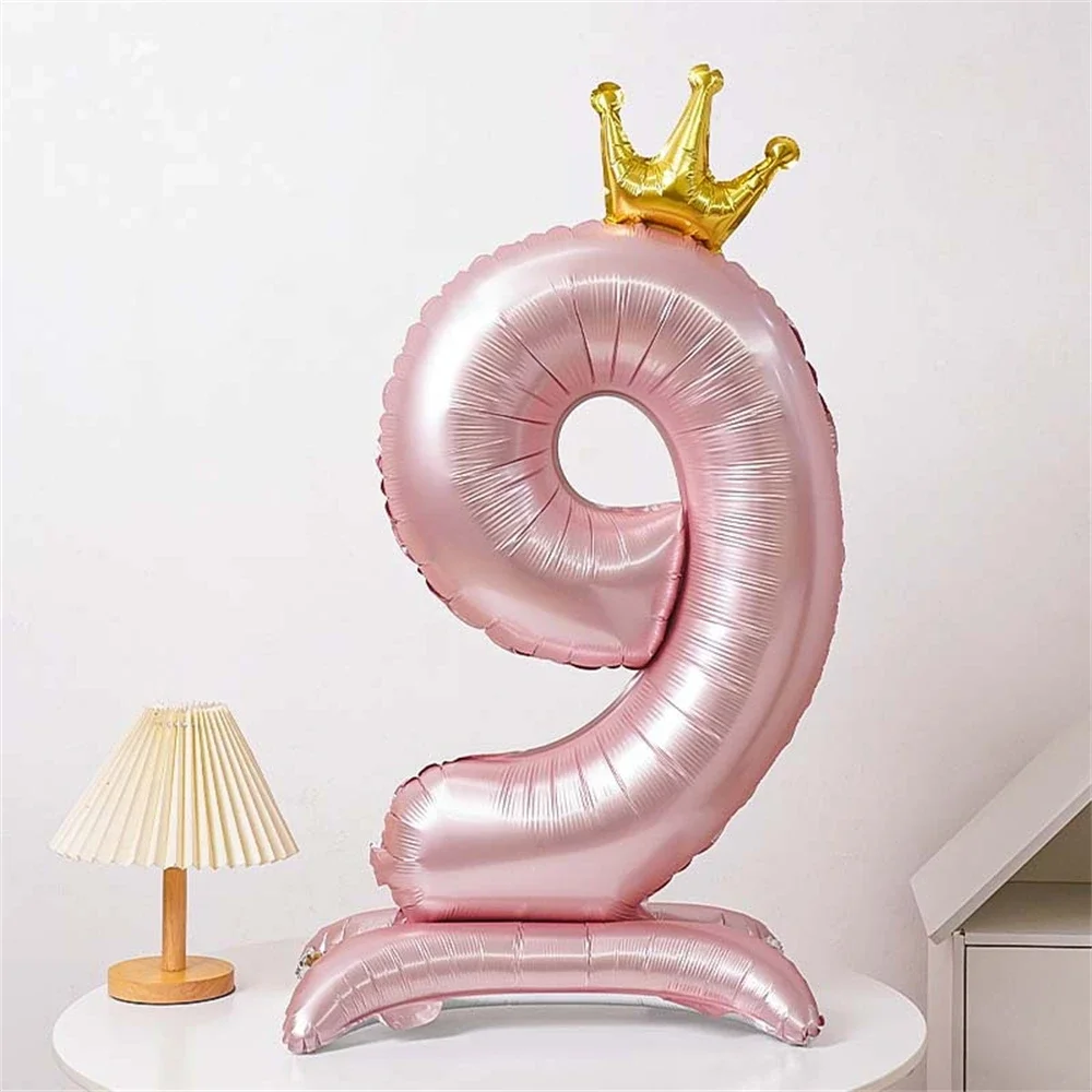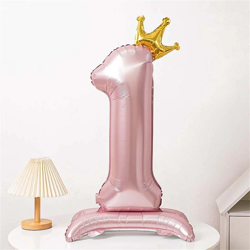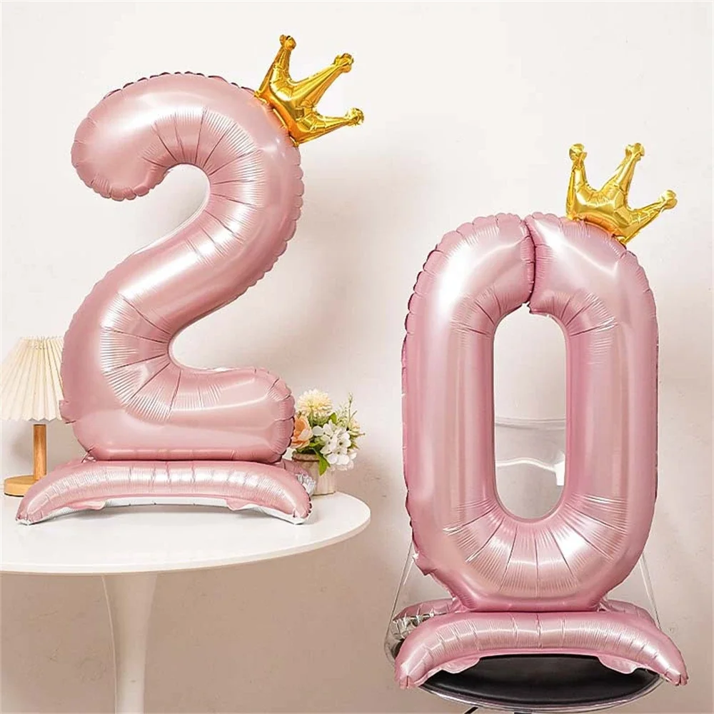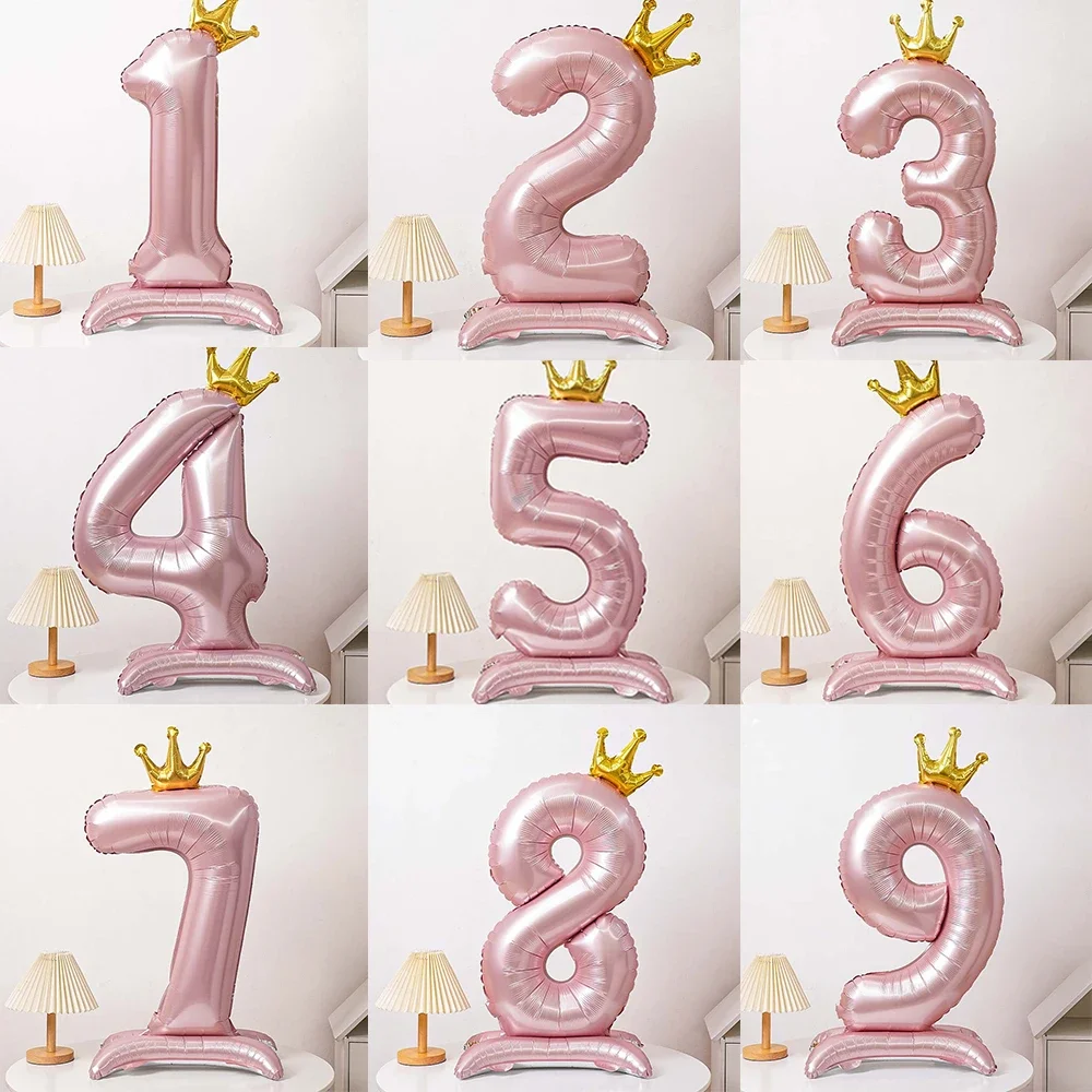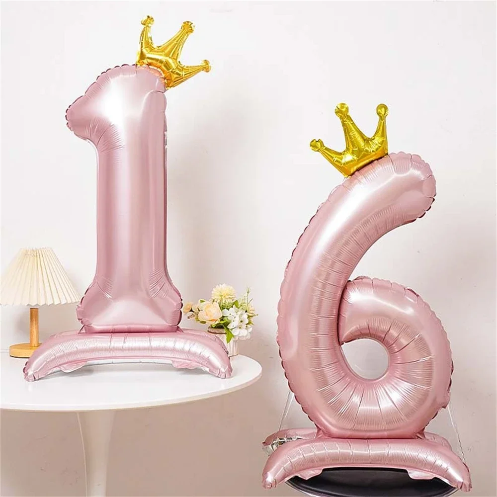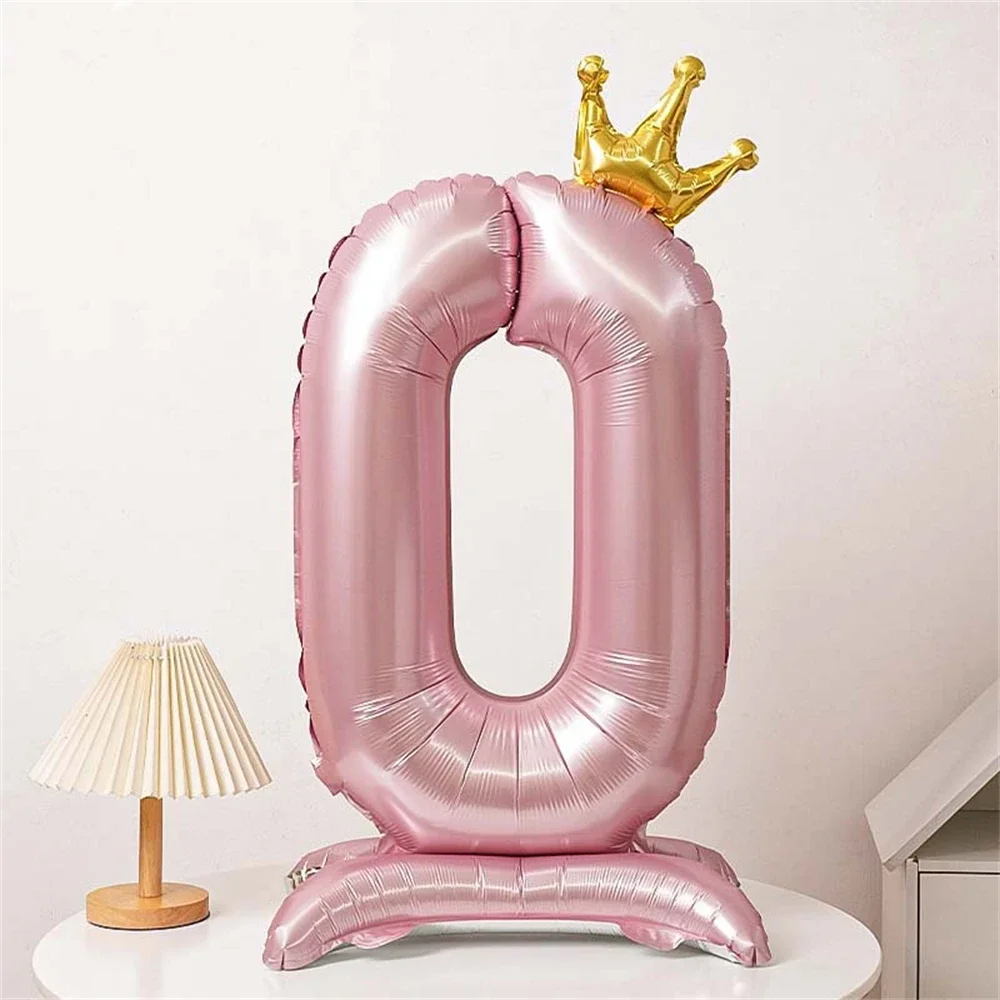 40inch Crown Decor Pink Blue Aluminum Foil Digital Balloon 0-9 Numbers Standing Balloons for Birthday Party Decoration Props