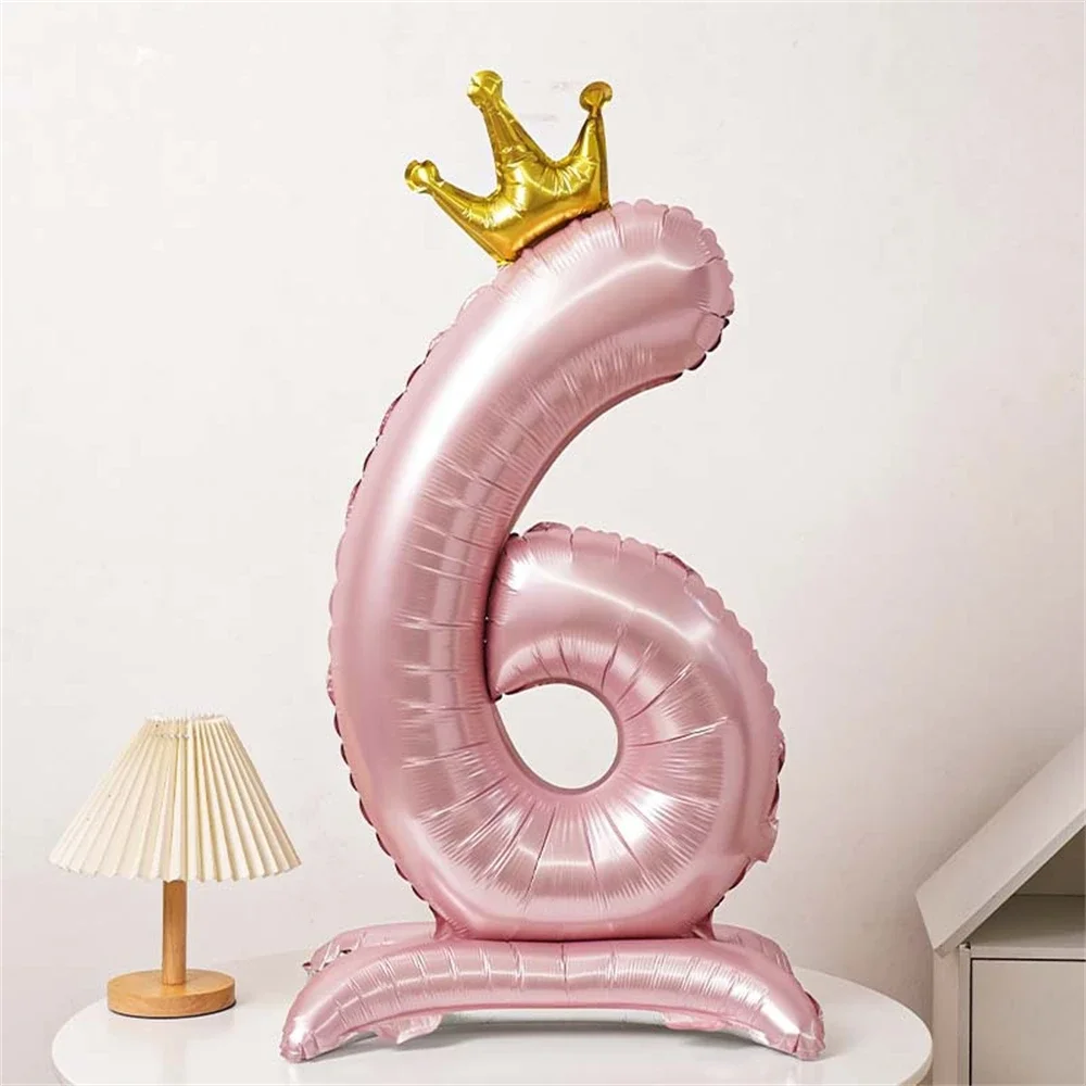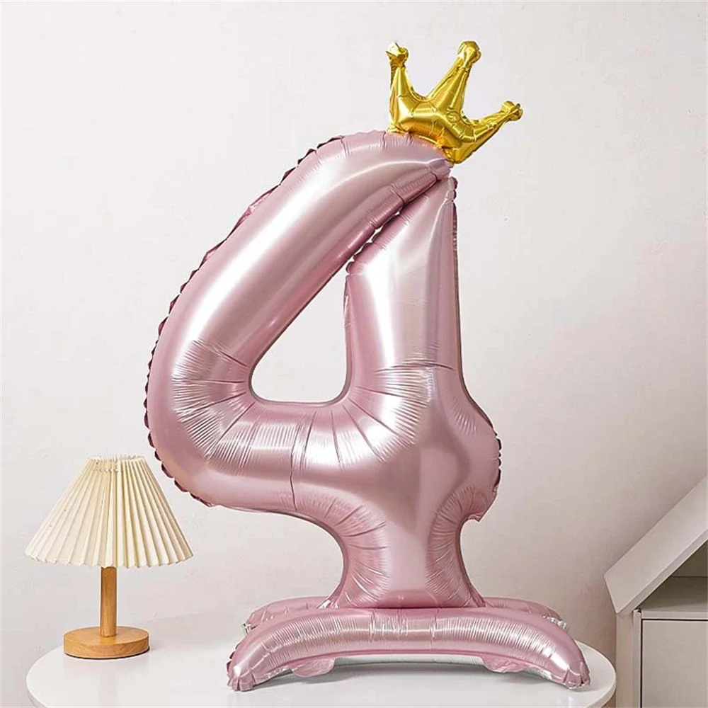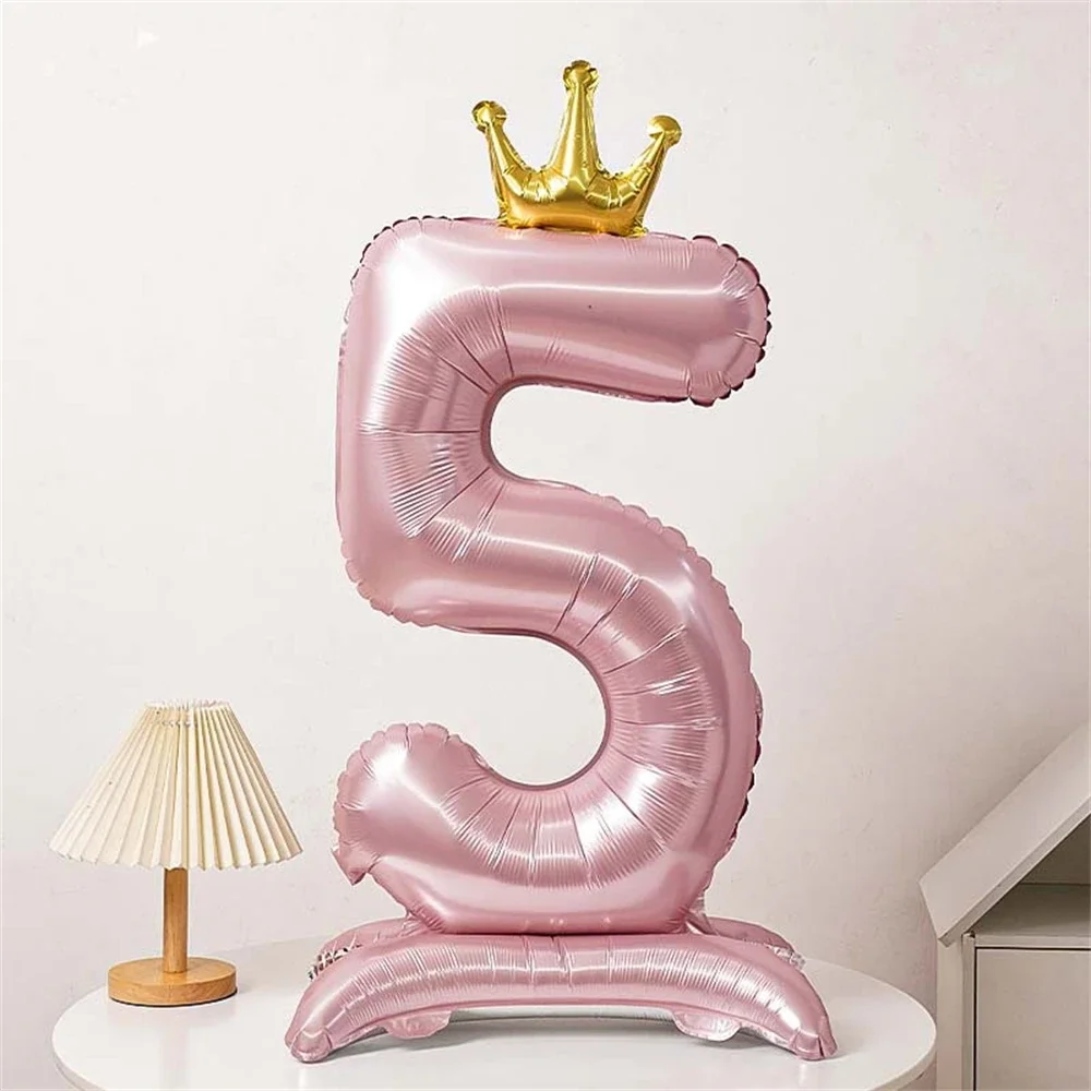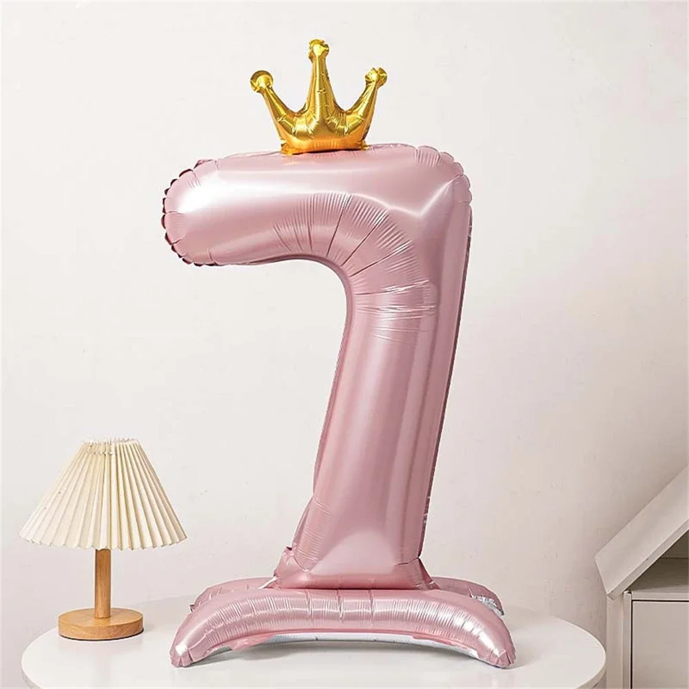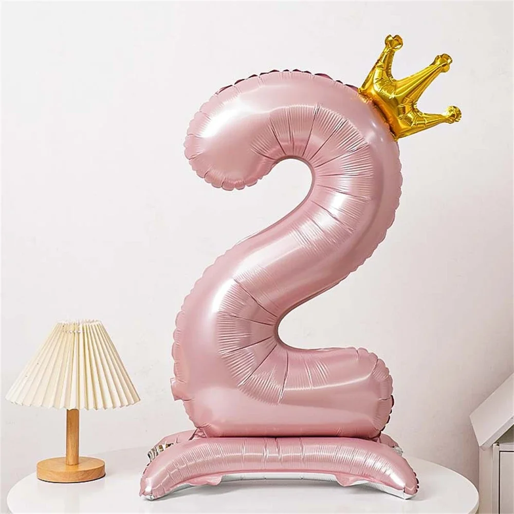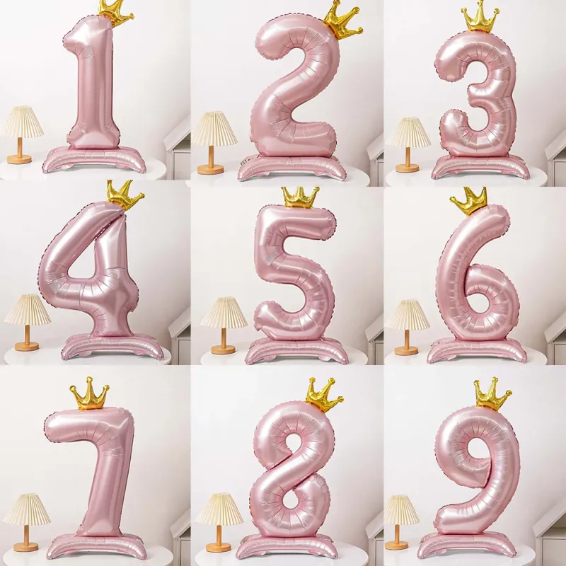 40inch Crown Decor Pink Blue Aluminum Foil Digital Balloon 0-9 Numbers Standing Balloons for Birthday Party Decoration Props