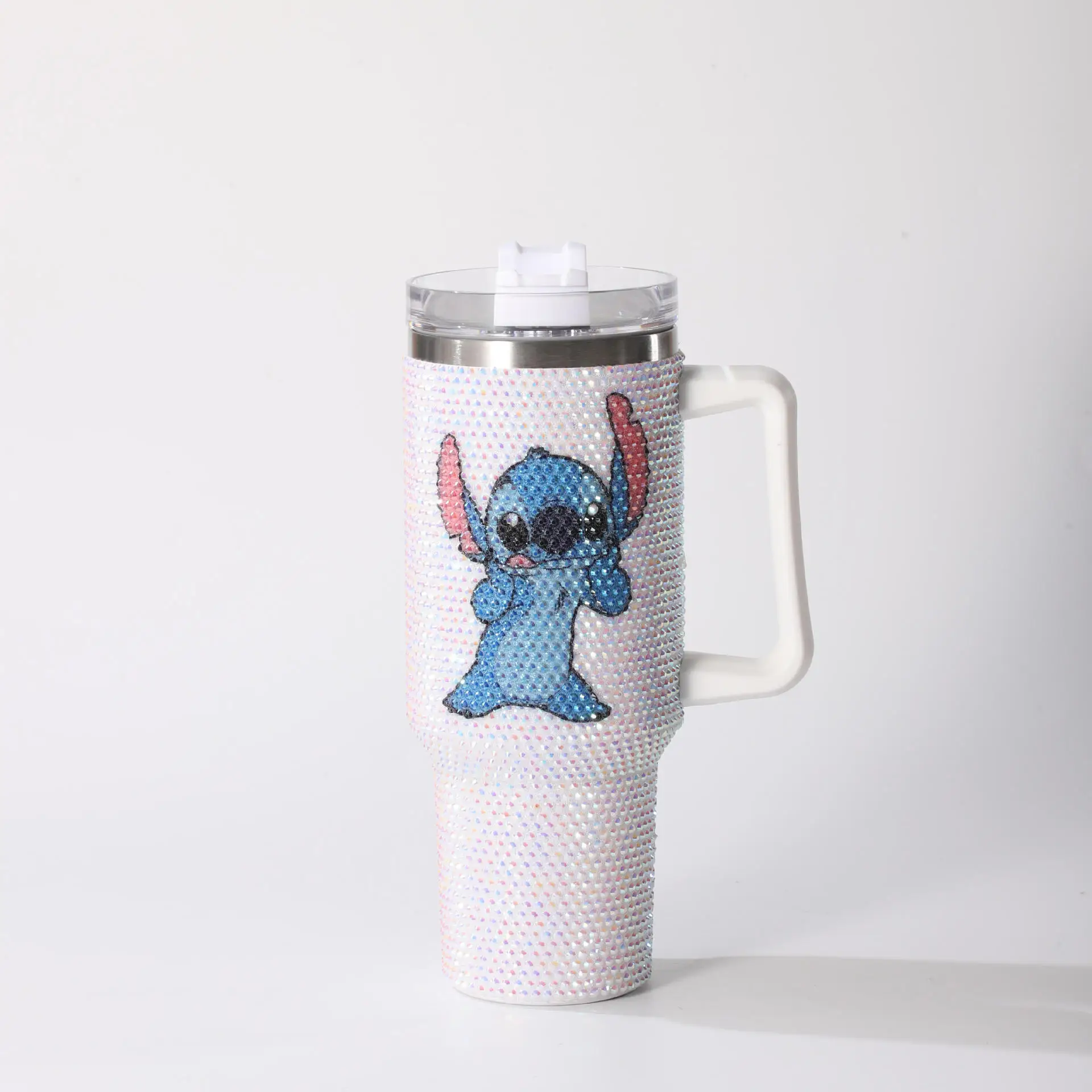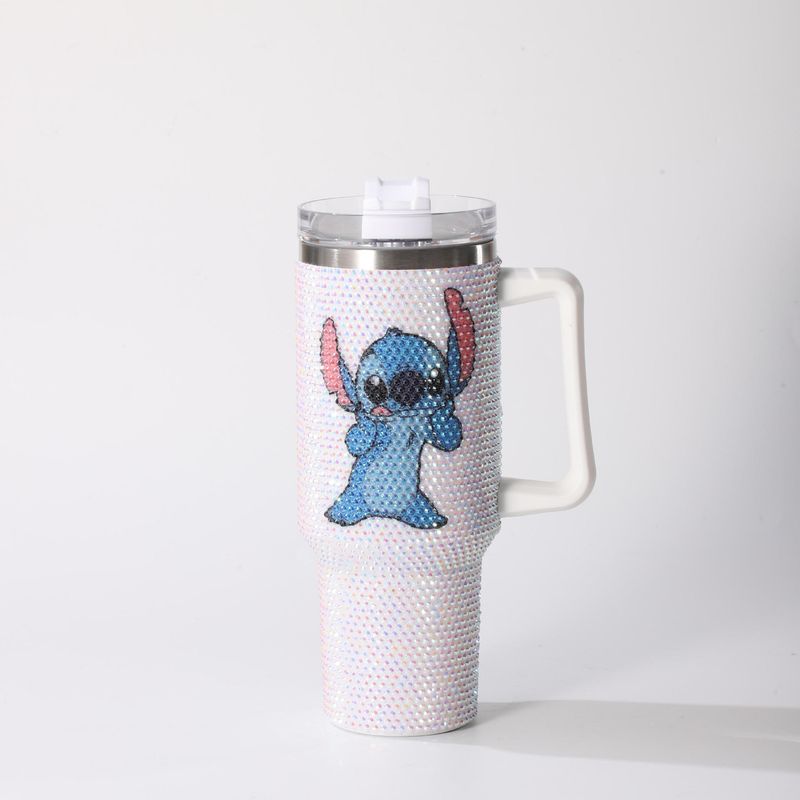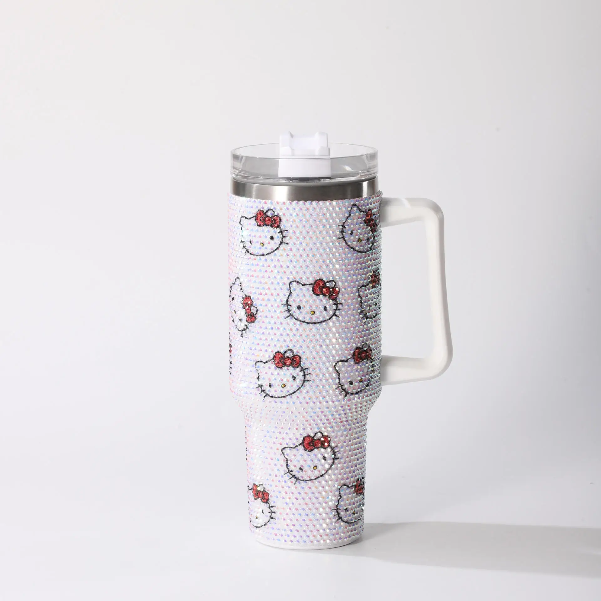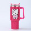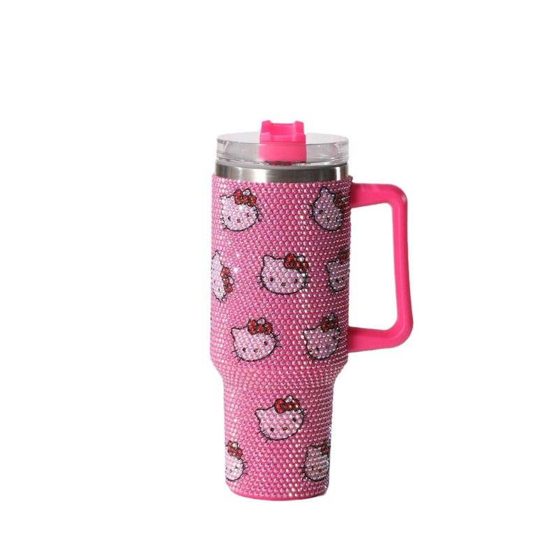 40oz Hello Kitty Cartoon Stainless Steel Cartoon Vacuum Cup Diamonds Insulated Cup Car Cup Handle Straw Large Capacity Gift