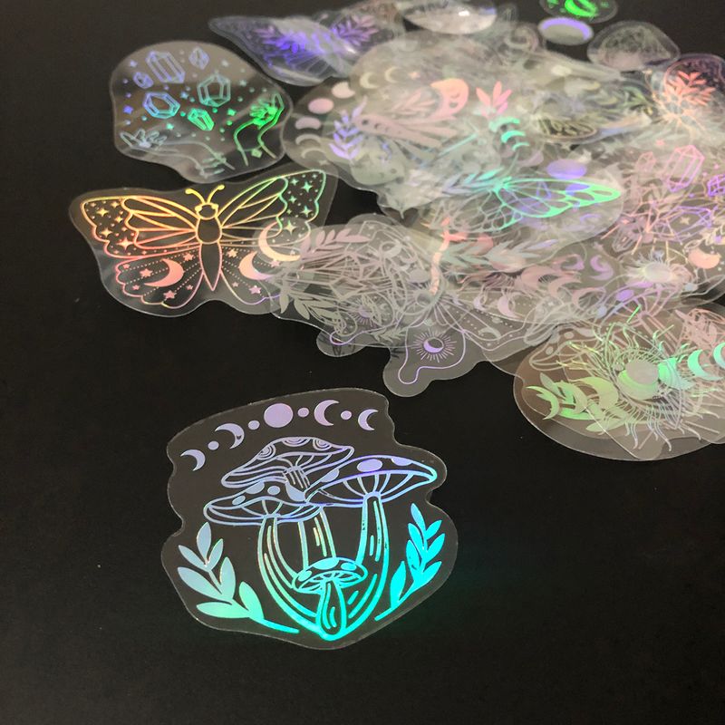 40pcs Holographic Glitter Stickers PET Transparent Shiny Waterproof Decorative Decals For Water Bottles Scrapbooking Laptop